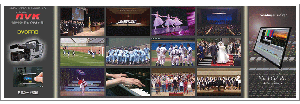 企業プロモーション・セミナー講演・ビデオ中継・各種イベント・結婚式・学校行事、幼稚園行事・日本舞踊・バレエ・ダンス発表会・各種スポーツ・寺院仏閣の各種行事などあらゆる場面で必要とされる映像・音声を、高画質・高音質で映像の制作をさせていただきます。ビデオの制作は、いつ何を撮影すのか、どのように撮影したいのかにより、その方法はさまざまです。日本ビデオ企画では、お客様のご要望をお伺いし、クオリティー面、価格面で、ベストな方法をご提案いたします。まずは、お気軽にお問い合わせ下さい。