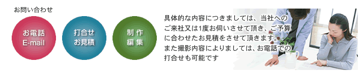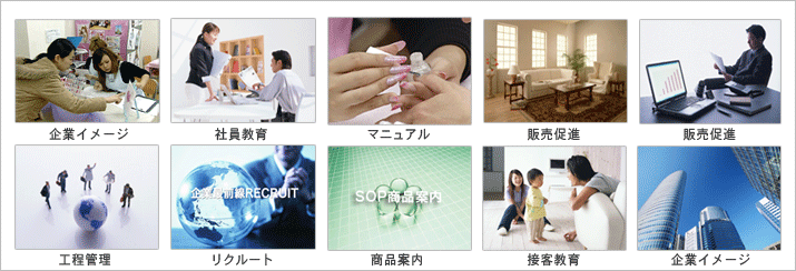 会社の持つイメージや個性、それらを映像の持つ豊かな表現力を生かし、いつ、どこで、誰に、何を伝えるのか、制作の目的を明確にし、企業イメージ、 リクルート用、 販売促進、 商品案内、各種マニュアル用ビデオ[社員教育・接客教育・行程管理・施工マニュアル]から企業セミナー、講演会及び、プロジェクターの大画面によるライブ映像の上映とインタビュー映像の制作まで、それぞれの企業の個性を活かしたプロモーション映像を制作致します。映像制作は初めてという方にも打合せから納品・Web配信用データ作成までお手伝いします、お気軽にお問い合わせください。予算に合わせた見積もりをさせて頂きます。
