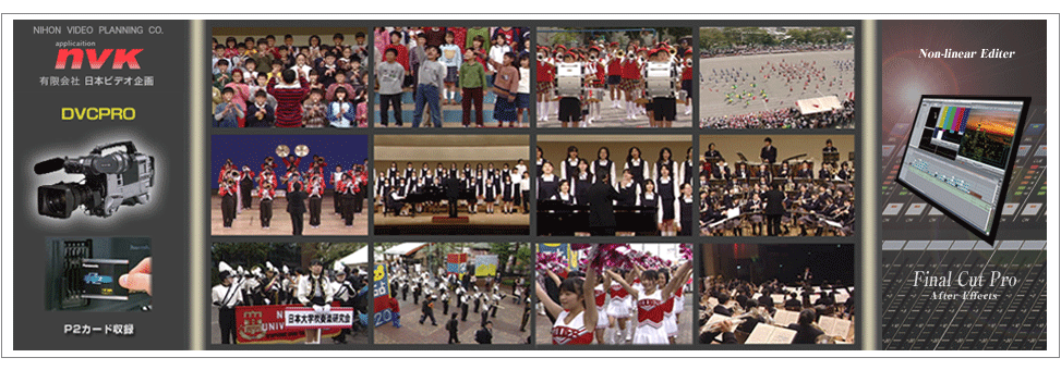 学校生活における正課活動および課外活動、入学式、卒業式、運動会、学習発表会、文化祭、修学旅行、校内合唱コンクール及び各校連合音楽会、クラブ活動、合唱・吹奏楽・各スポーツ部の試合ならびPTA活動を含め、日本ビデオ企画では、学校行事全判に渡り、記録販売を含め映像、音声共に高画質・高音質で映像の制作をさせていただきます。撮影には放送業務用DVCPROを使用、クオリティーの高い映像でお届けいたします。まずはお問い合わせください。